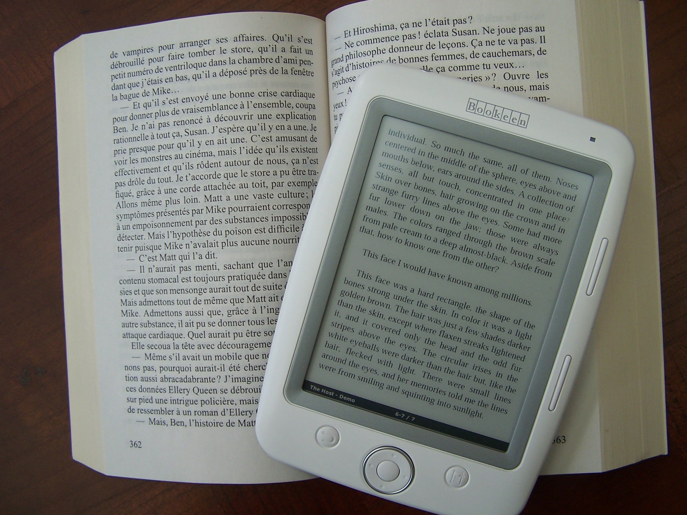 Longtemps que la partie logicielle de Bookeen a un train d'avance, c'est pas prêt de se démentir. Y compris dans la gestion des niveaux de gris. 4 seulement contre les 16 ailleurs? Mais avec ses 4 niveaux seulement, Bookeen a su les optimiser (bravo Laurent, c'est son oeuvre) et avec la définition en 200 dpi de ce nouveau lecteur on a un résultat impeccable dans le rendu des images.
