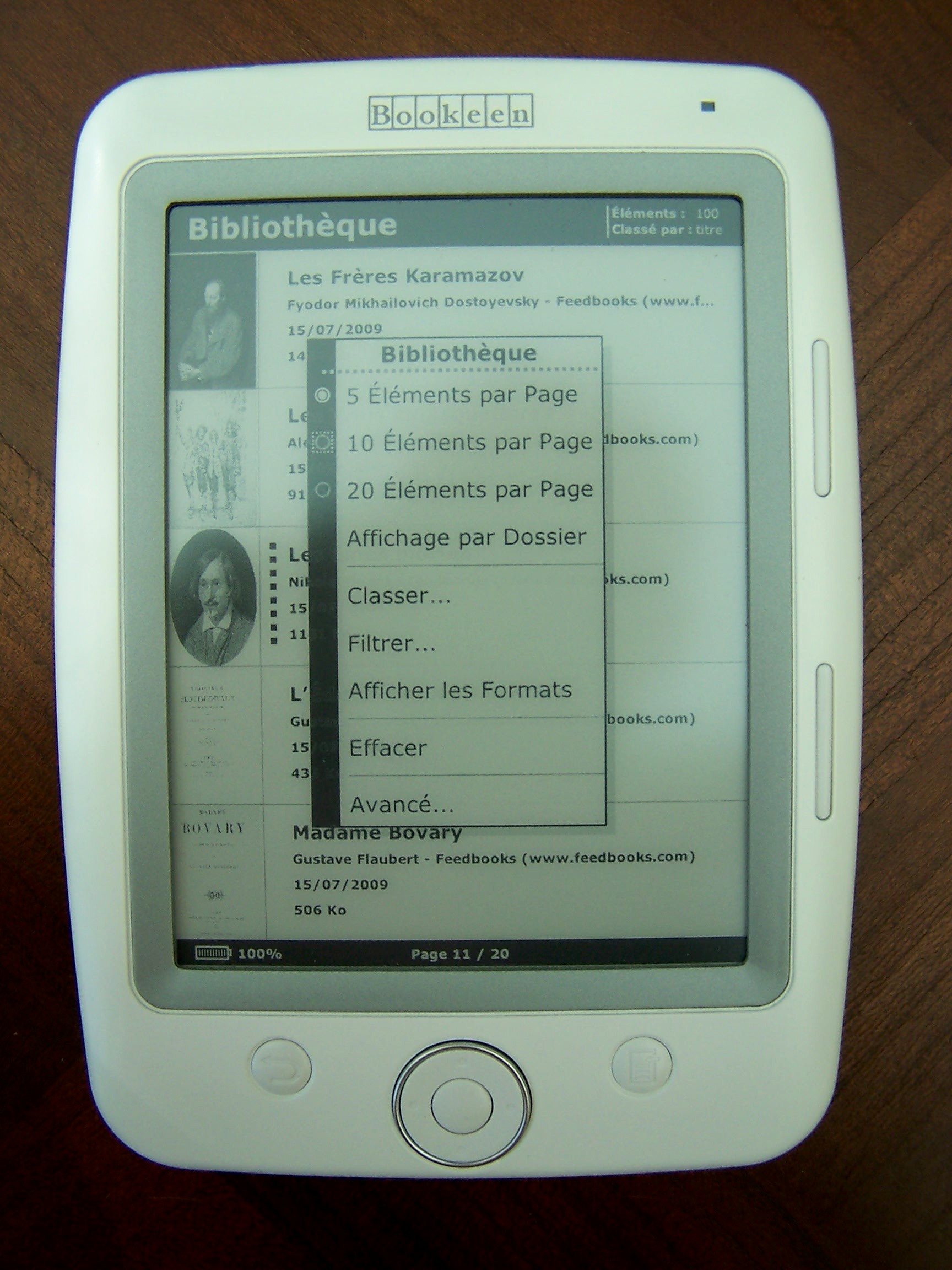 Les habitués du l'ancien Cybook se retrouveront dans la navigation de la bibliothèque avec une amélioration notable, la création de dossiers qui facilitent grandement le classement quand on dispose de bibliothèques copieuses comme certains. A noter aussi la mémoire interne du Cybook Opus qui a été