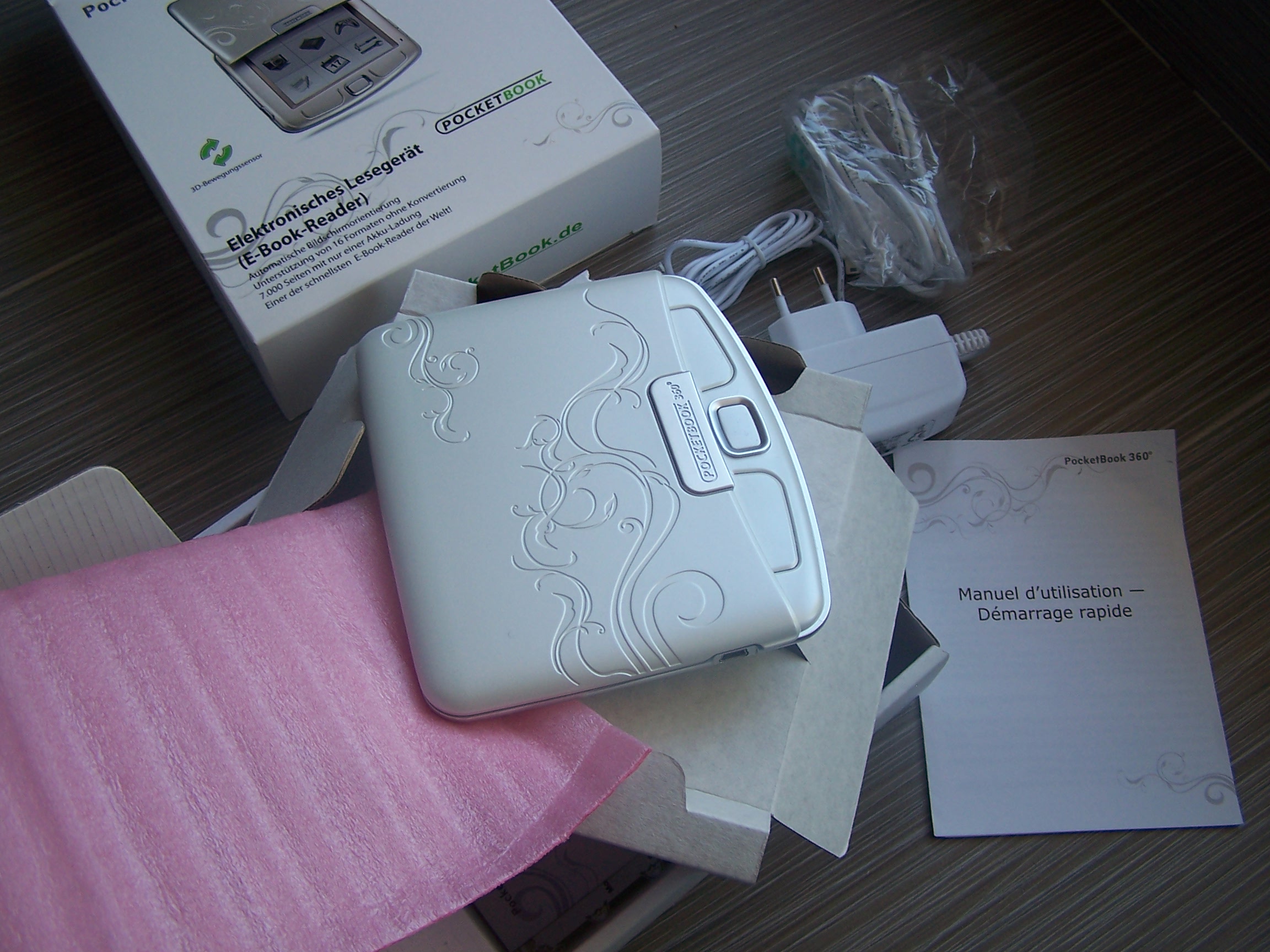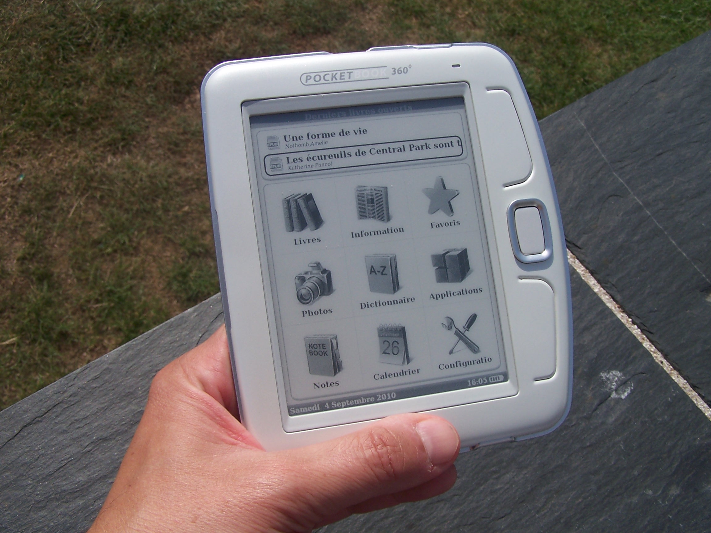La récente arrivée en France de la société PocketBook était l'occasion de tester plus longuement le livre électronique phare de la marque, le PocketBook 360. J'en étais resté à la présentation qu'avait fait Mobinaute ainsi que celle d'eBouquin il y a un an maintenant. A l'époque, sa non-reconnaissance de la DRM Adobe l'empêchait de pouvoir acheter la quasi-totalité de l'offre en France. Un peu embêtant, quand même. Aujourd'hui, ce n'est bien entendu plus le cas. Je remercie PocketBook ne m'avoir permis de tester ce modèle en condition d'utilisation réelle sur plus d'un mois. C'est à mon avis très important de pouvoir apprécier dans des conditions de lectures quotidiennes tout livre électronique de ce type. Aller au-delà d'un test rapide, beaucoup de petits détails prennent toute leur signification dans la durée. Avec un prix de 219€, le PocketBook se positionne en concurrent direct des CybookOpus et du prochain Sonyreader 350, sur lequel j'aurais l'occasion de revenir, sur le marché français. Je ne mentionne pas les modèles anglo-saxons dont on parle finalement beaucoup car le marché est plus avancé que chez nous mais qui sont complètement inutiles pour des lecteurs francophones.