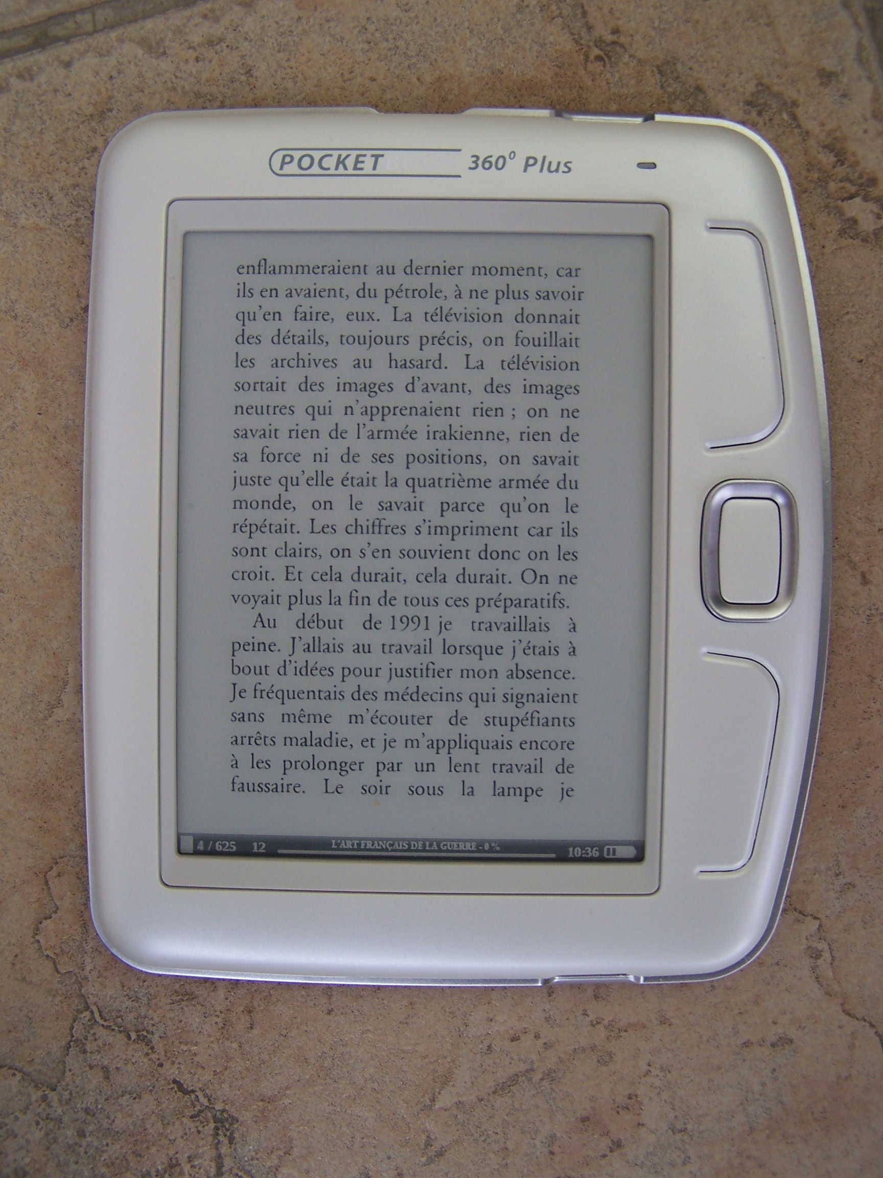 J'avais déjà eu l'occasion de vous faire découvrir le PocketBook 360, ce petit modèle extrêmement pratique et polyvalent qui est le lecteur le plus vendu de la marque. C'était il y a un peu plus d'un an déjà, ici. Depuis PocketBook lui a apporté des modifications avec un PocketBook 360 Plus. Pas de différences dans l'aspect extérieur. Il est disponible en ivoire et en bleu marine. Livré avec un simple petit cable usb. Le prix est à 114,44€ sur le site de PocketBook, ce qui est un peu cher sur le marché actuellement pour un lecteur ne disposant que d'un écran 5 pouces. PocketBook n'a pas encore nouer des partenariats avec des distributeurs/ libraires. En général, on observe une baisse de prix de l'ordre de 30€. Si c'était le cas, il pourrait être proposé à un prix de 79/89€, ce qui en ferait un lecteur extrêmement concurrentiel. Nous allons voir pourquoi: