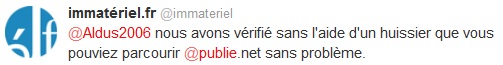 PS: si l'accès Publienet a été rétabli, je suis toujours blacklisté de chez Immatériel. "Une autre approche de la réalité numérique", en effet...