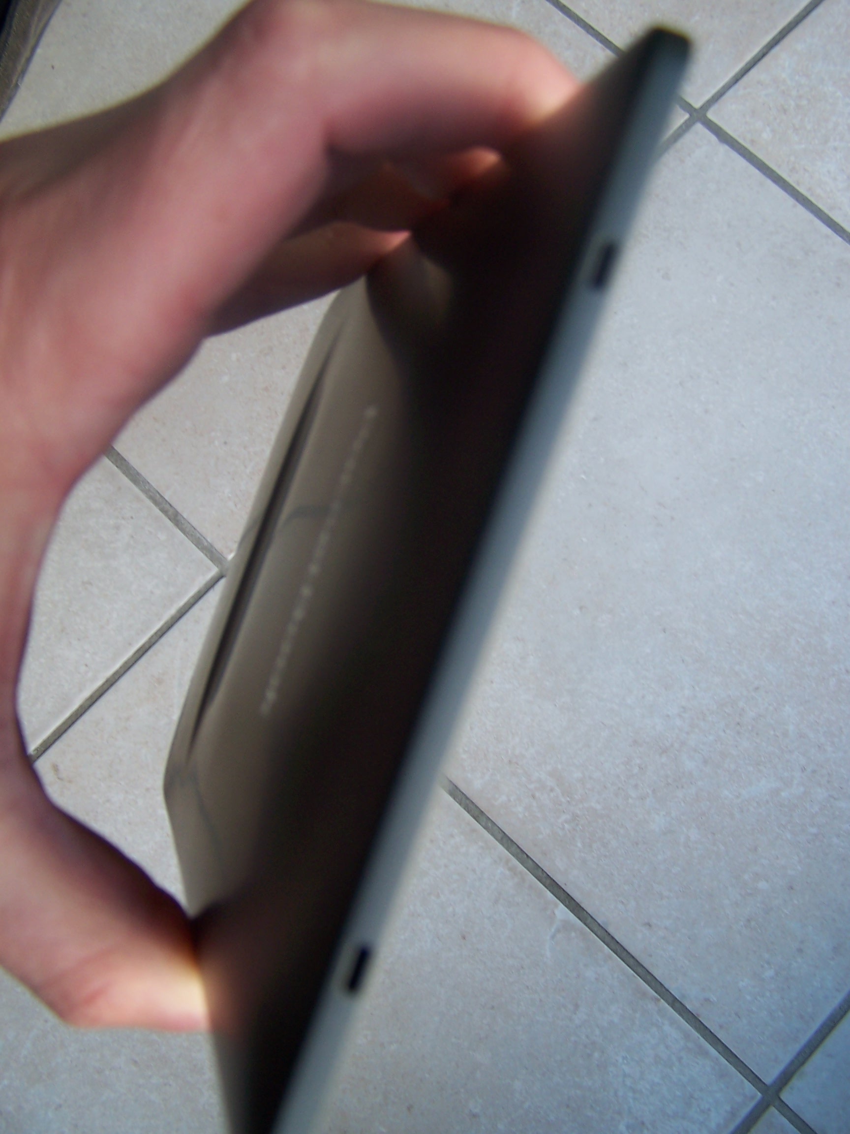Prise en main: packaging simple mais très réussi. A l'intérieur de la boite, juste un petit cable usb, standard désormais classique. Le Pocketbook Basic Touch est fin et léger (195g). Il possède le même design que son grand frère Touch Lux. Design très réussi, tout en rondeurs, un modelé dans la partie inférieure agréable. Les plastiques mats sont d'excellentes qualités, un noir soft au dos au touché doux que l'on connait bien maintenant. La finition est parfaite. Les boutons en bas très réussis à la fois souples et réactifs. Menu, arrière, avant, accès aux fonctions. Sur la tranche inférieure sont regroupées toutes les sorties, dans l'ordre, usb, reset, carte micro SD et bouton allumage. Des bords lattéraux larges qui facilitent la prise en main, présence d'une LED au dessus des boutons, qui peut se déactiver si vous le souhaitez avec les réglages. Allumage, écran eInk Pearl HD. Le gris de l'écran reste à mon avis plus prononcé que sur d'autres modèles comme le Sony PRS-T3. Vous verrez les photos en bas avec le Kobo Touch, son concurrent direct dans cette gamme de prix. La présence d'un film tactile à la place d'une dalle en verre n'a pas changé la donne. Ce détail reste mineur certes, mais bien réel si vous êtes déjà posseseur d'un modèle plus ancien, y compris en eInk Vizplex.