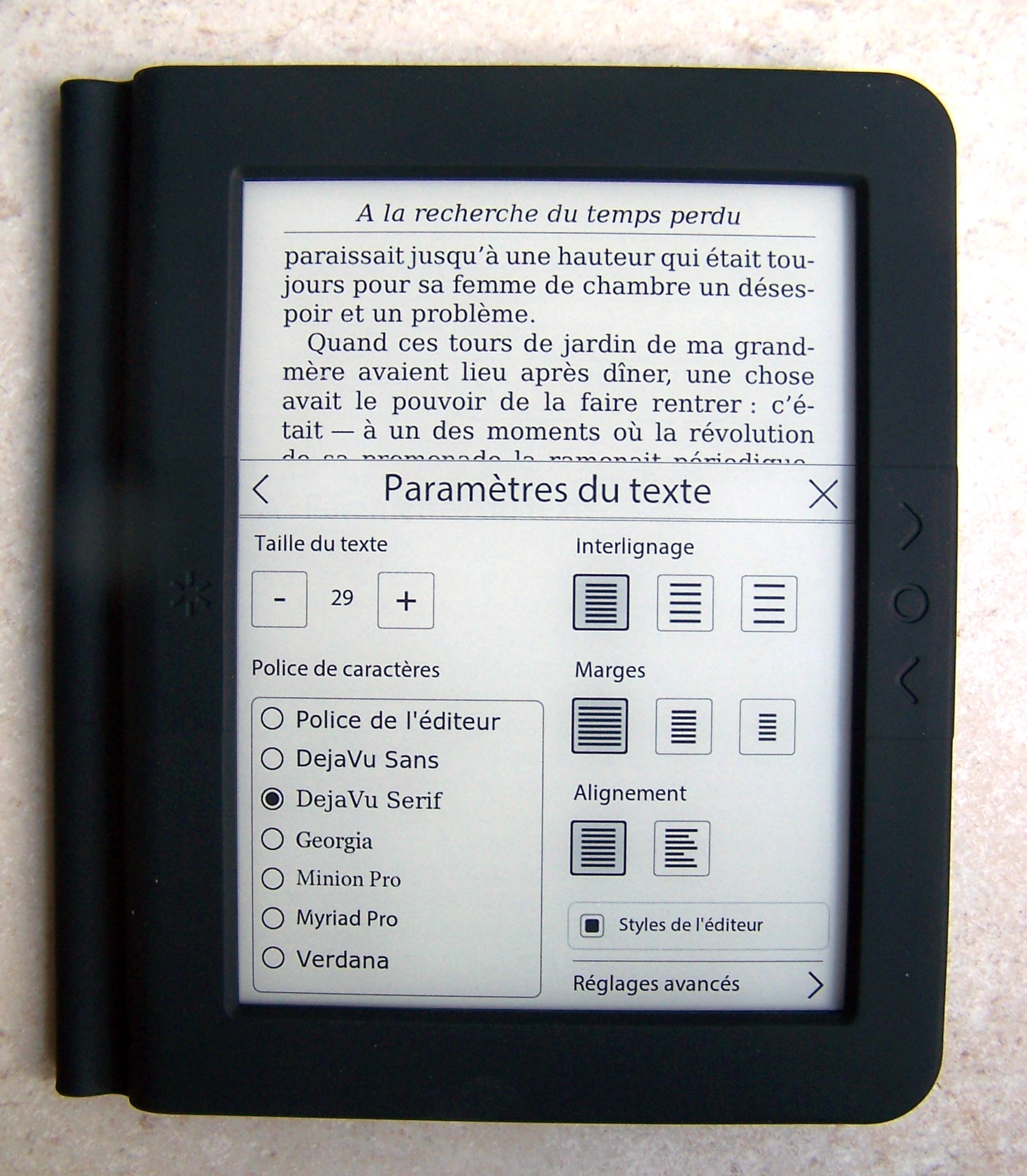 - côté software, solide expérience de Bookeen avec des réglages très étendus