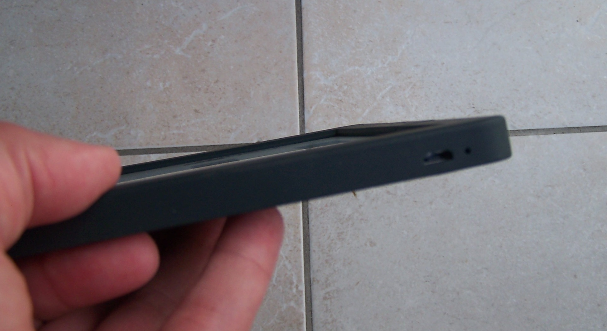 La marque Bookeen, emboutie sur le plat de couverture, est très discrète, pas de mention à l'intérieur ni au dos. Bravo. La matière entièrement en solicone (un choix assumé, vous lirez plus bas) est à la fois très agréable au toucher et très souple pour le repli indispensable. Le plat magnétique de la couverture apporte une finition parfaite à la fois fermée ou repliée au dos à la lecture. Coté dimensions, 136 x 159 x 14.8mm. En hauteur, pas de concession, c'est strictement celle des Cybook Muse ou Kobo. En largeur, ouverture de la couverture oblige, c'est un bon centimètre et demi supplémentaire. Un objet plus carré mais qui reste pratique. Légèrement plus épais également pour la coque de protection. Une fois fermée, vous aurez un objet rigide extrêmement résistant en mobilité dans les sacs, avec une pile de journaux pour le train ou en voiture. Pas de drame si elle tombe. Pas d'inquiétude non plus pour l'été. Même si la Saga n'est pas étanche pour la mettre dans l'eau, avec sa coque et son revêtement intégral elle ne craindra aucune éclaboussure sur les bords de piscine ou à la plage avec du sable. Une réelle impression de résistance, je me suis fait la réflexion que l'on pourrait sans doute rouler dessus en voiture. Un peu idiot sans doute mais vous donne une idée de l'impression de solidité qui s'en dégage.
