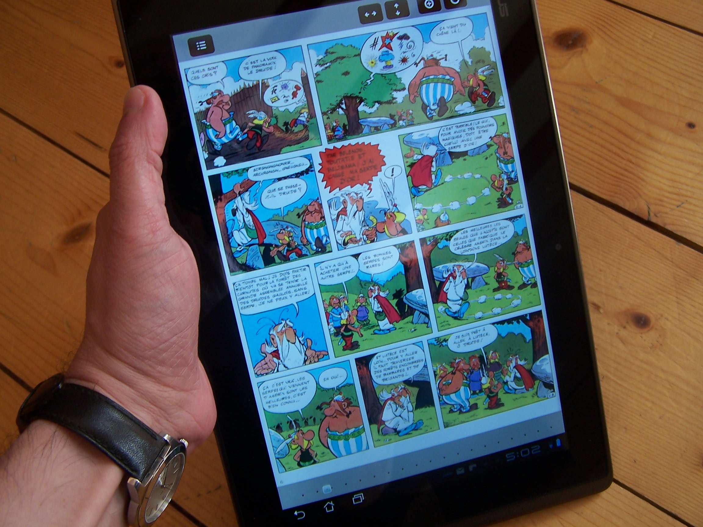 A noter l'excellent lecteur MyLibrary proposé directement sur l'Asus. ePub, PDF, impeccable. C'est avec cette application que l'on mesure l'intérêt d'une tablette au format 16:10 par rapport au 4:3 de l'iPad. Deux pages en largeur de manière parfaite. Bon format aussi pour tirer parti de l'intégralité du surf web, regarder des vidéos ou des films. Le vrai sens de lecture pour cette tablette Asus est l'horizontal. Côté mode vertical, c'est un peu étroit pour magazines et bandes dessinées, mais les choses vont évoluer, la presse française va avancer vite maintenant, l'été va voir arriver son lot d'offres. Bref, cet Asus préfigure vraiment l'ordi portable de demain, j'en suis convaincu et je ne suis pas le seul, d'après les premiers chiffres de vente. Asus va voir s'engouffrer d'autres fabricants à sa suite. Je reviendrais sur des applications de lecture sous Android dans les prochaines semaines au rythme où je les découvre. Bien entendu, rassurez-vous, pas question de lacher pour autant mes lecteurs numériques favoris (tous à base d'eInk), aussi indispensables pour moi que mon téléphone!