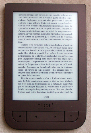 . Un format équivalent au A5 papier, c'est à dire la moitié du format A4. Vous savez comme je suis sensible à la qualité de l'écran, un confort de lecture vraiment irréprochable, en terme de contraste et de définition.