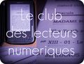 Notre Club des Lecteurs Numériques change de look en ce début d'année. Un peu plus d'un an d'existence déjà. Le cercle s'agrandit un peu plus aussi avec deux nouveaux membres, Charly et son blog Chroniques de livres, Catherine et son blog Vosdansletexte, l'un avec son Kindle, l'une avec son Cybook. Nous sommes désormais plus d'une quarantaine avec une bonne moitié d'actifs. J'espère que ce petit espace vous donnera des idées de lectures, vos retours si vous êtes "nouveaux lecteurs" nous intéressent aussi, n'hésitez pas à commenter et nous faire part de vos pratiques numériques.
