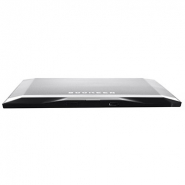 Prise en main: Côté packaging, soigné, pas grand chose à dire, on retrouve celui du Muse. Boite cloche simple. A l'intérieur le Cybook Océan est accompagné d'un cordon usb et d'une série de petits modes d'emploi dans de multiples langues. Comme le Cybook Muse, ce qui frappe d'emblée avec ce nouveau modèle chez Bookeen, c'est le design de la partie supérieuse, une surface supérieure unie comme sur un smartphone ou une tablette. Avec le généreux format 8 pouces, on a vraiment l'impression de se trouver devant une petite tablette. Le Kobo Aura était le premier modèle de ce type l'année dernière avec une dalle capacitive. Bookeen s'aligne sur une tendance forte puisque Tolino a lui aussi décliné un modèle de ce type Tolino Vision en Allemagne. Ce qui frappe aussi sur ce Cybook Ocean, c'est que la dalle est très brillante, vraiment comme une plaque de verre. C'est très net si l'on compare avec la dalle en plastique du Cybook Muse qui est relativement mate. Deux conceptions très différentes. Les réverbérations sont bien plus accentuées sur ce Cybook Ocean. Bookeen annonce un traitement anti-reflets, je ne vois pas où il est. Comme toutes les tablettes, la surface est relativement sensible aux traces de doigts, prévoyez un nettoyage régulier avec les pouces ou de temps en temps avec un petit chiffon/ mouchoir. Côté design, ce Cybook Ocean est très réussi. Très fin (7 mm) c'est encore moins sur les bords, léger malgré sa taille (300g), la prise en main est très agréable. Les plastiques noirs au dos ne sont pas d'une qualité supérieure, standard nous dirons, pas de revêtement soft-touch. Comme sur le Muse le soin sur ces plastiques est flagrant par rapport à d'autres fabricants. Si on retrouve un design général calqué sur le Muse, plusieurs changements. D'abord pas de boutons en reliefs, les trois boutons (avant/ arrière et menu) sont tous les trois placés en pied et inclus dans la masse de la dalle comme sur une tablette. Bookeen a abandonné les boutons de chaque côté pour les placer en bas. D'une seule main, il faudra vous servir de votre pouce pour tourner les pages avec la dalle tactile. Changement également dans la connectique puisque les seuls éléments extérieurs sont en pied, le bouton marche/ arrêt et la sortie usb. L'emplacement de la carte mémoire existe bien mais il faut ouvrir le capot en plastique placé en bas au dos. Vous verrez la photo. Un accès qui laisse bien à désirer avec une manipulation guère évidente et un capot qui est bien fragile, attention de ne surtout pas casser quoi que ce soit. Ne comptez pas trop accéder souvent à votre carte au gré de vos liseuses. Une fois installé, cette carte sera à oublier. J'aime aussi la discrétion du logo en haut. L'ensemble de ce Bookeen Ocean est très réussi hormis la réserve sur l'emplacement de la carte et la dalle relativement brillante à mon goût.