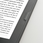 Nous l'attendions depuis plus d'un an, le voilà enfin. Vous êtes sans doute nombreux à attendre le test du Cybook Ocean de chez Bookeen. Il avait été présenté au dernier Salon du Livre dans une version prototype, il sort finalement en cette toute fin d'année, disponible uniquement sur la boutique du site de Bookeen au prix de 179,90€. Les premières séries sont déjà épuisées, beaucoup attendait ce format. Voir les caractéristiques ici. Bookeen avait annoncé fin 2013 ce premier modèle au format 8 pouces. Depuis, PocketBook a sorti son InkPad au même format, grillant la politesse à Bookeen de quelques mois. Une véritable innovation que ce format 8 pouces proche des tablettes, qui s'ouvre à la fois pour des lecteurs qui ne sont pas forcément en recherche de mobilité mais plus de confort chez eux avec des mises en pages plus grandes. Avec bien sûr des amateurs dans l'univers semi-professionnels qui veulent disposer d'un modèle grand format pour lire des documents PDF (thèses, rapports, mémoires, etc). Sans doute aussi pourquoi pas les amateurs de mangas. Bref, bien des champs à explorer sur ce Cybook Ocean. C'est parti pour un tour du propriétaire: