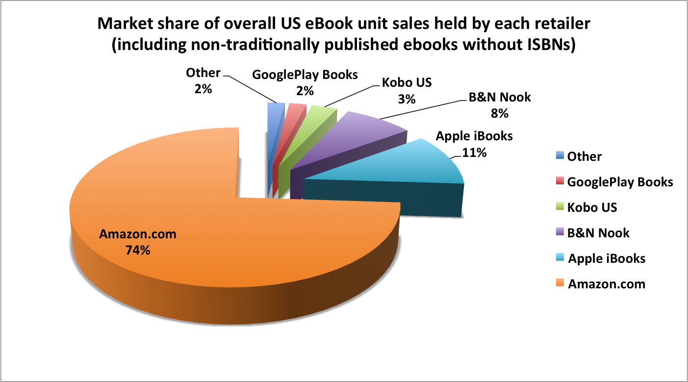 L'AAP s'appuie sur les données mensuelles communiquées par environ 1200 éditeurs aux États-Unis (les données annuelles s'appuient sur un échantillon plus important). On rappelera que l'explosion des ventes d'ebooks aux États-Unis s'est produite entre 2009 et 2012. Sur la seule année 2012, elles ont progressé de 41%, toujours selon l'AAP. De 1% du chiffre d'affaires des éditeurs sur le segment trade, les ebooks ont vu leur part passer à 22,8% l'an dernier.