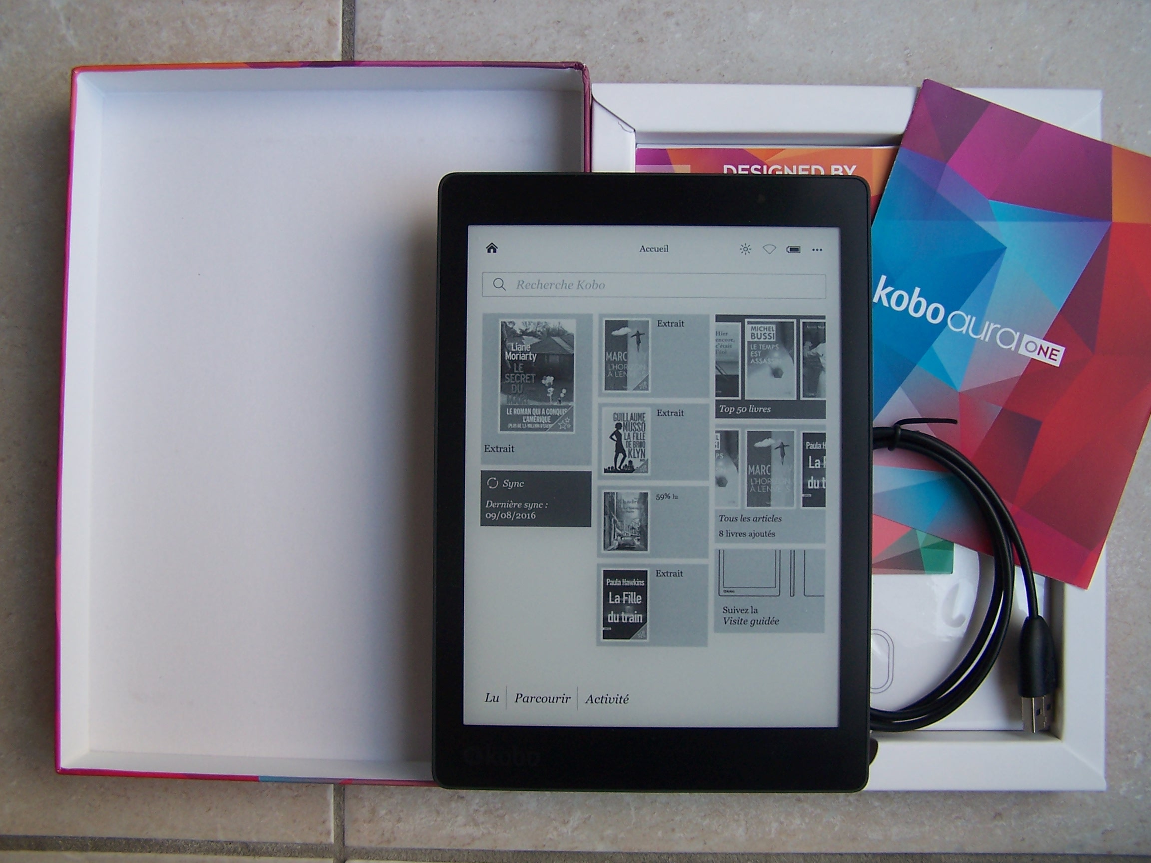 La concurrence est désormais rude sur le marché des liseuses qui est devenu très mâture, avec des lecteurs qui passent beaucoup de temps à lire sur leurs matériels et qui sont forcément de plus en plus exigeants. Plus que le prix, c'est le soin du détail et l'ergonomie générale qui président au choix. Quelques dizaines d'euros supplémentaires ne sont souvent pas rédhibitoires à l'achat, pour des liseuses que l'on conserve de nombreuses années. Les fabricants l'ont bien compris avec des fonctionnalités ajoutées, c'est aussi le cas aujourd'hui, nous le verrons. J'avais dit à l'époque tout le bien que j'avais pensé du Kobo Aura H2O à sa sortie. En plus du format, la qualité de l'écran était l'atout de cette liseuse. Voyons si ce petit coup de "pouce" supplémentaire va valoir la peine de succomber au Kobo Aura One. Le Kobo Aura One est-elle la nouvelle référence en matière de liseuse? C'est parti pour un tour complet du modèle: