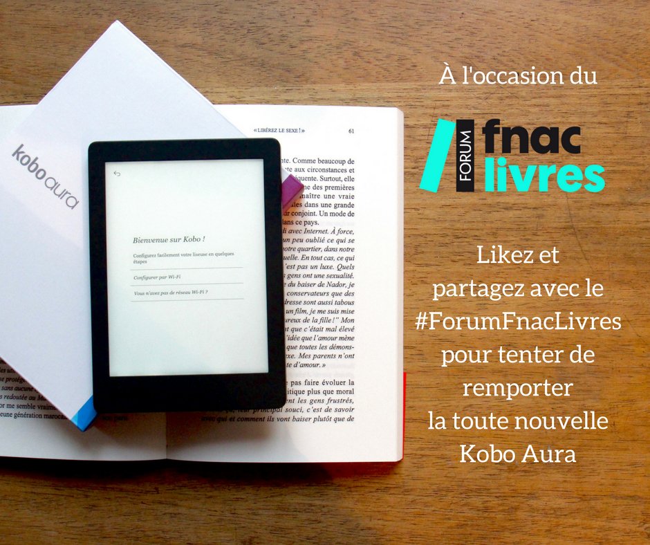 La Fnac organise ce week-end son 2ème ForumFnacLivres à la Halle des Blancs Manteaux à Paris. Les détails sur le site. Plusieurs table-rondes sont proposées sur le livre numérique avec son partenaire Kobo. Des liseuses Kobo Aura sont à gagner.