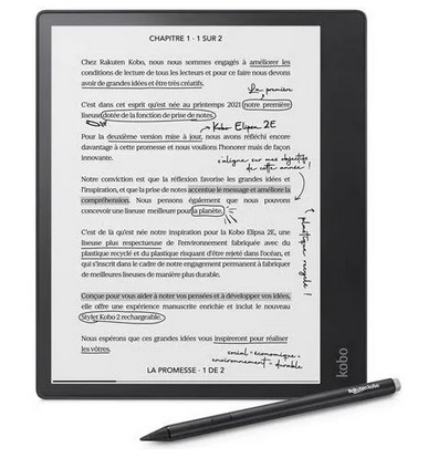 Une nouvelle version de la Kobo Elipsa est proposée en ce mois d'avril par Kobo/Rakuten. Le modèle précédent était sorti il y a deux ans. J'avais eu l'occasion de le tester, tout le bien que j'en pensais en terme à la fois de fonctionnalités et de connectivité, revoir ici. Des liseuses grand format semi-professionnelles pour des lecteurs qui souhaitent annoter abondamment les livres, revues, articles, etc. Il y a une forte concurrence dorénavant sur ces modèles premium avec les reMarkable 2, Kindle Scribe et autre Bookeen Notea. Kobo annonce un nouveau stylet et une interface améliorée. C'est souvent dans les petits détails que viennent se nicher des améliorations probantes pour les lecteurs. La Kobo Elipsa 2E sera disponible à partir du 19 avril au prix de 399,99€. Un étui Sleep Cover est proposé pour 69,99€ de plus.