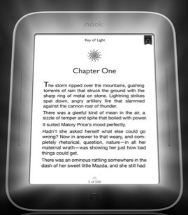 Trois heures pour le charger complètement, c'est parti. Allumage. Ecran 6 pouces eInk Pearl c'est celui qui est utilisé sur l'ensemble du marché, le meilleur en qualité avant les prochain Pearl HD qui avanceront sur la définition. C'est ce qui se fait de mieux en terme d'affichage non-rétroéclairé. Fond de l'écran, qualité de contraste, rien à redire. Le Nook s'ouvre très vite en quelques secondes, le processeur Texas Instruments au rendez-vous. L'année dernière je m'étais trompé, ce n'est pas Freescale mais bien TI qui est sous la coque. Pour tous les autres détails, je vous renvoie à mon test de l'année dernière puisque que les deux modèles sont identiques. Mais la surprise, c'est bien entendu la lumière!