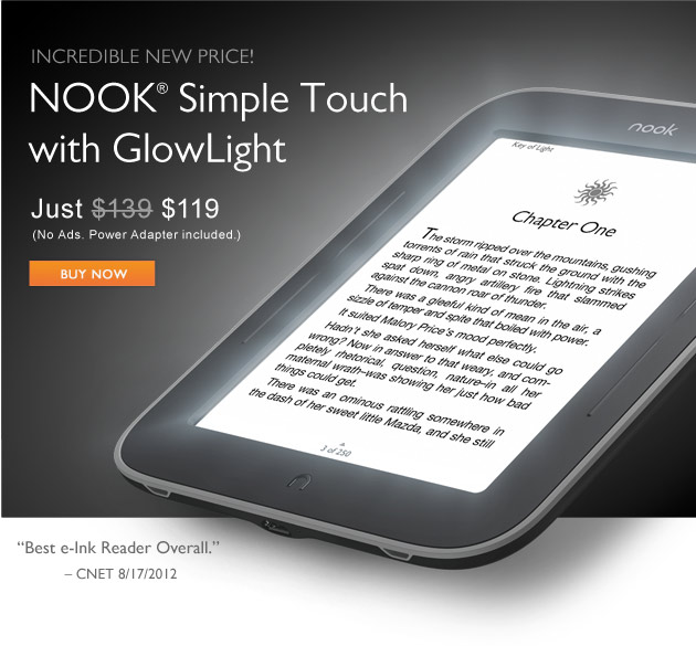Le Nook Simple Touch était déjà le meilleur livre électronique sur le marché, avec ce nouveau Nook Simple Touch with Glowlight, Barnes and Noble prend encore un coup d'avance par rapport aux autres. Nous allons découvrir les nouveaux modèles qui arrivent en cette rentrée chez la concurrence. La lumière intégrée est la grande innovation de cette année avec le Kindle Paperwhite d'Amazon et le Kobo Glo de Kobo. En attendant, je vous conseille plus que jamais ce livre électronique, tant j'ai de plaisir à l'utiliser chaque jour. Sincèrement, cette fonction Glowlight est un plus qui vaut grandement les quelques dizaines d'euros supplémentaires, faites-moi confiance. Si vous connaissez quelqu'un qui peut vous le ramener des Etats-Unis dans ses bagages (un peu plus de 100€ avec le taux de change), il est aussi en vente sur des sites basés en Angleterre sur eBay. Il nous viendra par l'Angleterre c'est annoncé. Ce Nook nous manque, à nous, pauvres européens que nous sommes!