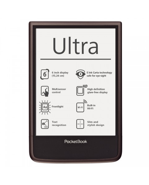 Prise en main: Packaging soigné, comme d'habitude chez PocketBook. A l'intérieur de la boite juste un cable usb, standard désormais classique. Deux petits documents soignés, garantie et prise en main rapide. Le Pocketbook InkPad change radicalement dans la prise en main c'est indéniable. Plus qu'une liseuse, on a l'impression désormais d'avoir une petite tablette en main. Le changement est flagrant. Le PocketBook InkPad est très fin avec seulement 7,3 mm d'épaisseur, une impression très nette et agréable. Le poids, en revanche, correspond à l'objet avec 350g sur la balance. C'est un peu plus que l'iPad mini de dernière génération qui est à 331g. Comparé aux liseuses, c'est une sensation différente. Les habitués trouveront l'objet sans doute un peu lourd. La comparaison s'arrête là bien sûr avec l'iPad mini avec des fonctionnalités qui n'ont rien à voir. Le PocketBook InkPad reste une liseuse avec une orientation dédiée à la lecture. Côté format, la présence d'une bande en plastique softtouch sur le côté droit, avec des boutons dans la masse pour les changements de pages, donnent la sensation d'un objet plutôt carré (195,5 х 162,8 х 7,3mm). Au dos nous avons une coque de couleur marron foncé avec une partie en softtouch, toujours à droite, qui donne sur le côté droit une excellente prise en main, très agréable. Le PocketBook InkPad, comme les Kobo Aura et Tolino en Allemagne, est un modèle avec la dalle bord à bord pour l'écran comme sur une tablette. Côté connectique, très peu de chose. Sur le bord supérieur, le bouton marche/ arrêt et un petit cache à ouvrir avec l'ongle, dessous l'emplacement de la carte SD et de la prise usb. Sur le bord inférieur, juste l'emplacement de la prise audio pour un casque. Rien à gauche, à droite seulement les sorties audio pour le son. La finition générale est excellente, des plastiques de qualité supérieure, nous avons vraiment la sensation d'un objet haut de gamme, ce qui n'est pas toujours le cas chez la concurrence. J'aime beaucoup la discrétion du logo PocketBook en haut à gauche, il s'oublie complètement. Un PocketBook InkPad très soigné tout en rondeurs, le design est très réussi. Franchement c'est du sans défauts. Un magnifique objet, très agréable dans la prise en main aussi bien sur le côté d'une seule main que dans des prises en main différentes, vertical comme horizontal.