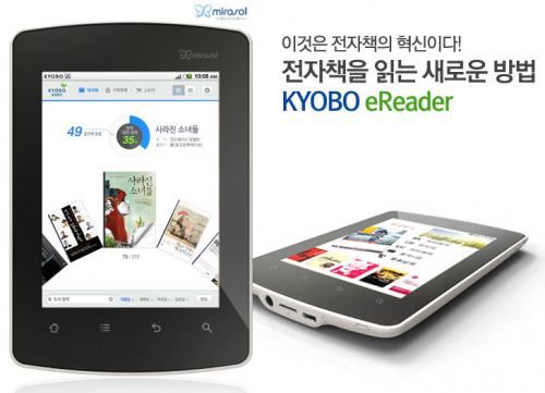 The e-reader features Qualcomm's 1.0 GHz "Snapdragon" processor, a custom Kyobo application based on Android and a 5.7 inch "XGA" mirasol display.