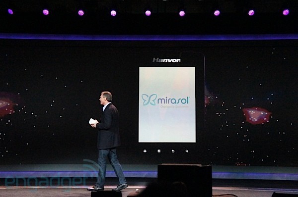 The mirasol display uses ambient light instead of its own in much the same way that a peacock's plumage gets its scintillating hues. Qualcomm's mirasols have already been used in a few Chinese and South Korean phones, and in an MP3 player on the U.S. market. The display contains tiny mirrors that consume power only when they're moving, easing battery drain. Mirasol displays also quickly change from one image to the next and show video.