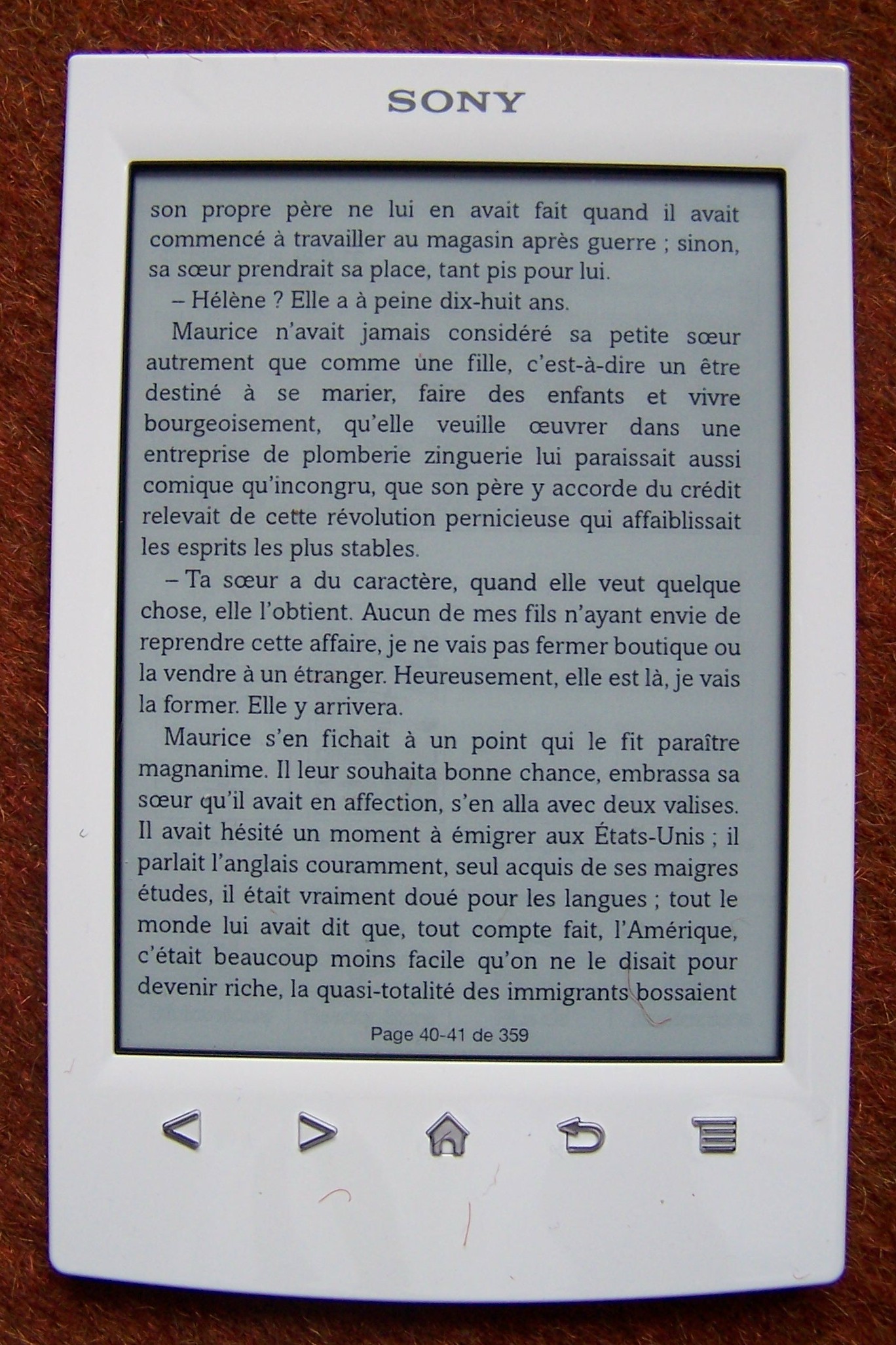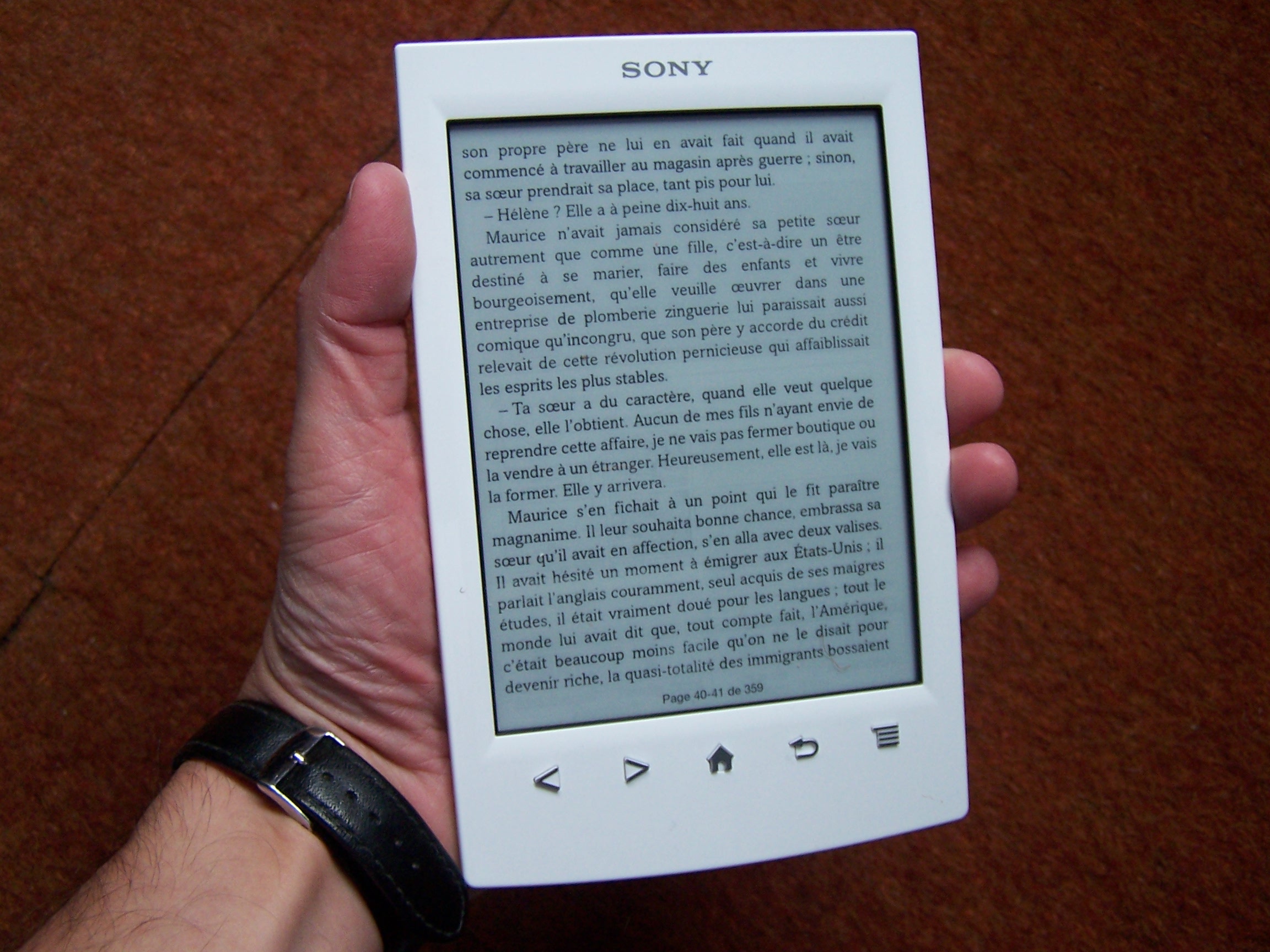 Au final, un sentiment mitigé. Un très bon livre électronique, j'ai peut-être été trop dur, mais c'est vrai que de la part d'un acteur comme Sony, j'attendais beaucoup mieux; surtout de sa capacité à tenir compte des expériences précédentes. A chaque fois, problème récurrent, Sony ne nous donne jamais un modèle quasi parfait, comme si constamment la stratégie était de nous faire remettre au pot un an après, et encore et encore. Je dois dire que j'avais beaucoup plus apprécié le modèle précédent. Avec le wifi et l'accès DropBox, il serait parvenu en tête de mon palmarès haut la main, alors que celui-ci me laisse un sentiment général d'inachevé. Et puis l'écran gris, sincèrement, beaucoup de mal à m'y faire, attention si vous êtes un amateur fidèle depuis quelques années. Ou alors, ayez la chance et la perspicacité de vous procurer un modèle provenant d'un bon lot d'écrans.