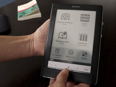 "Tout d'abord, j'ai été très déçu de voir que les documents PDF de la BEQ que je pensais tout à fait adaptés pour les liseuses s'affichaient en beaucoup trop petit à l'écran. Sur un écran de 5 pouces, cela doit être tout à fait inutilisables. - Deuxième petite déception: que le PRS-505 ne prend pas la justification du texte dans le format EPUB. Mais bon, je n'aime pas particulièrement ce format. Je crois tout de même que j'ai assez bien réussi la conversion des volumes à ce format. La possibilité de choisir la taille des caractères rend la lecture agréable, cependant.