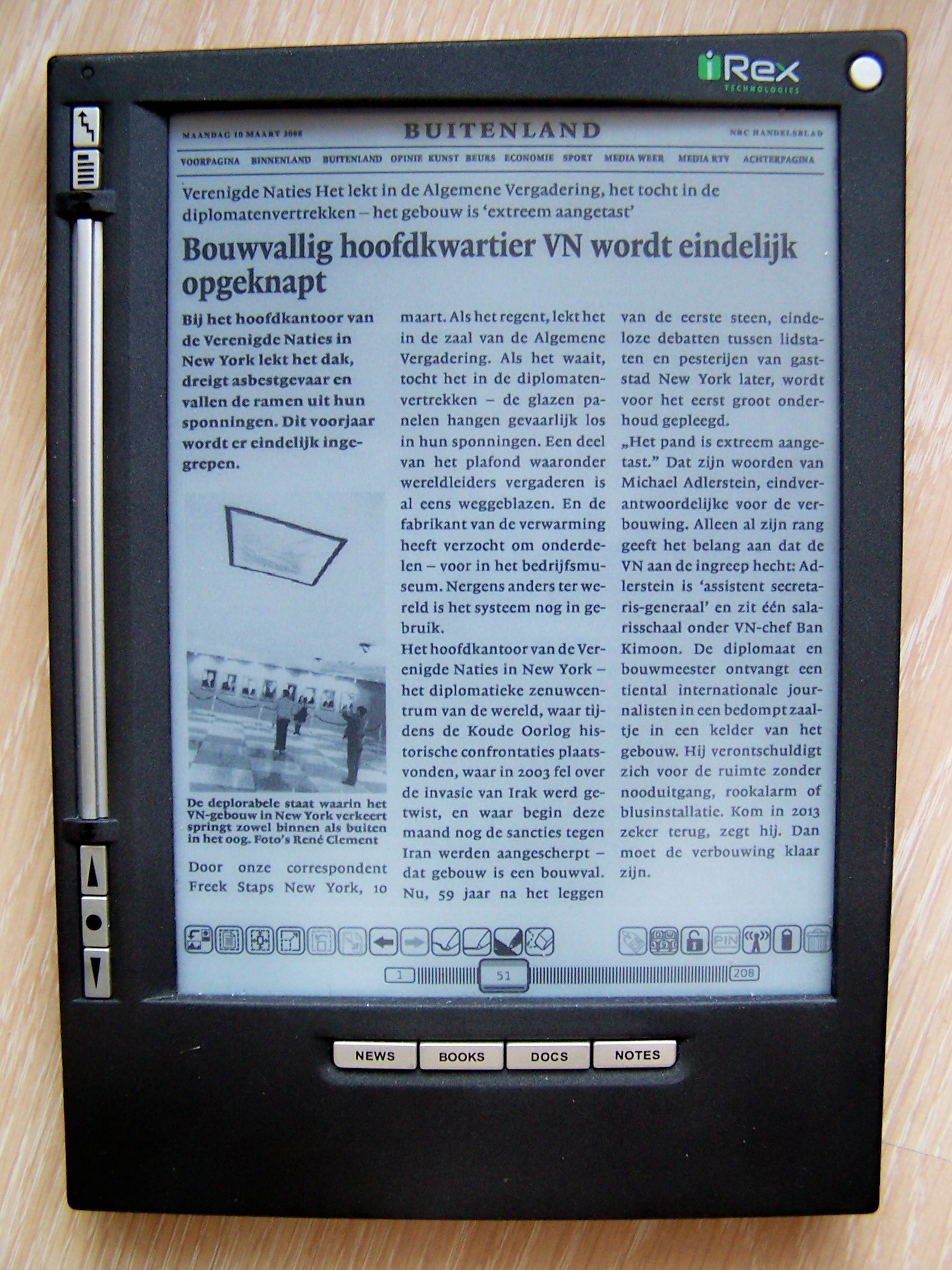 - wifi avec serveur iRex iDS, qui regroupe à la fois l'Iliad (Book Edition and 2nd Edition) et DR1000S. Les abonnés peuvent télécharger directement leur journal sur leurs lecteurs (DR1000S par Companion Software pour Windows)