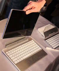 Bien plus intéressant selon moi que des tablettes à double écran qui ne permettent absolument pas de travailler à plat, ni de bénéficier du confort d'un clavier, l'écran amovible qui se transforme en tablette est une très bonne idée qui permet de basculer très facilement de l'un à l'autre, du portable à la tablette selon les moments et les usages. Et surtout de ne pas trimballer deux lecteurs différents. Conjuguer netbook et tablette, simple non? C'est ce que proposera Asus début 2011. Le fabricant taïwanais a en effet profité du récent Computex 2010 pour présenter ce nouveau modèle Eee-Pad avec un format 12 pouces. Asus a aussi dévoilé une tablette au format 10 pouces équivalente à l'iPad.