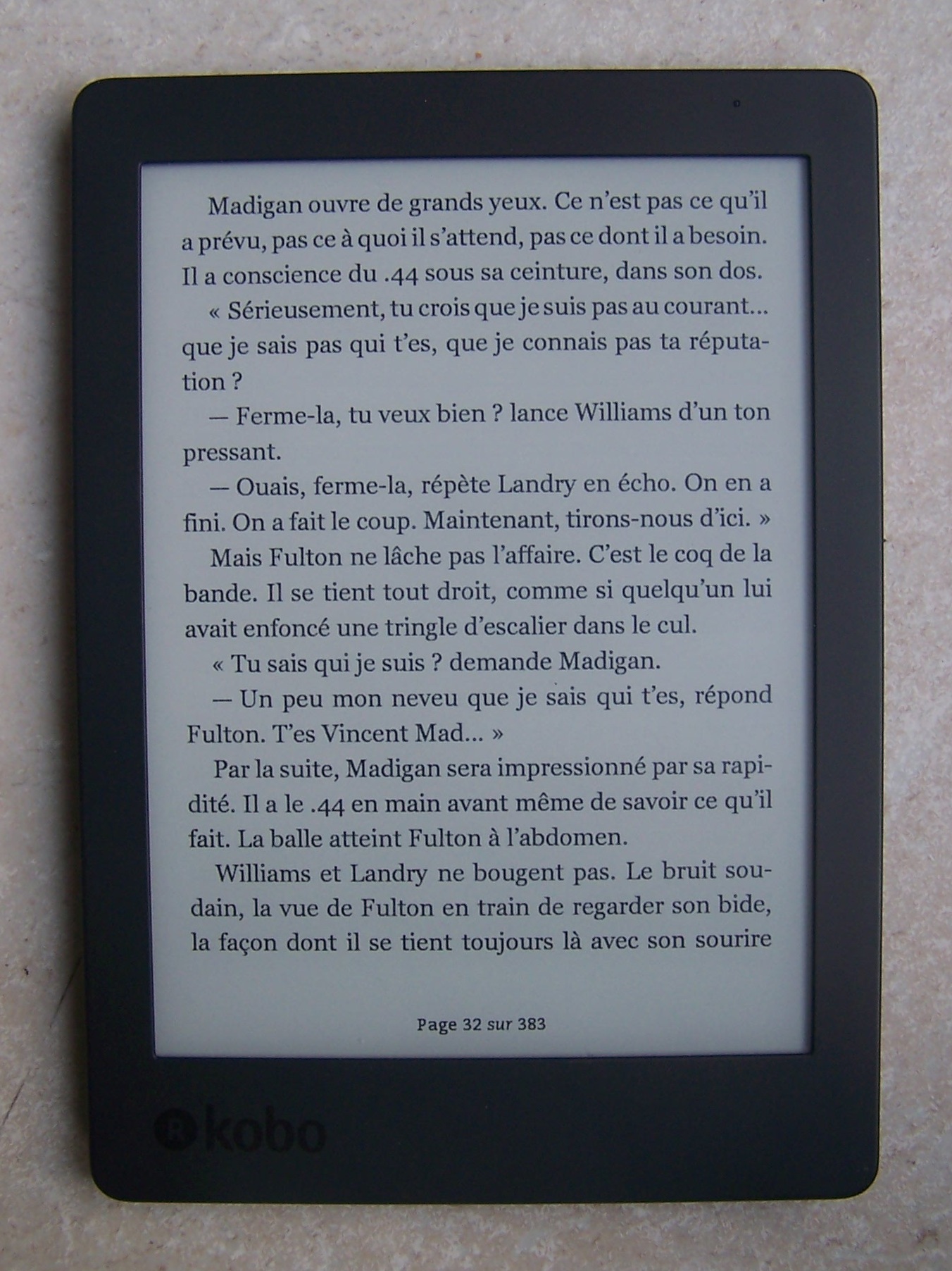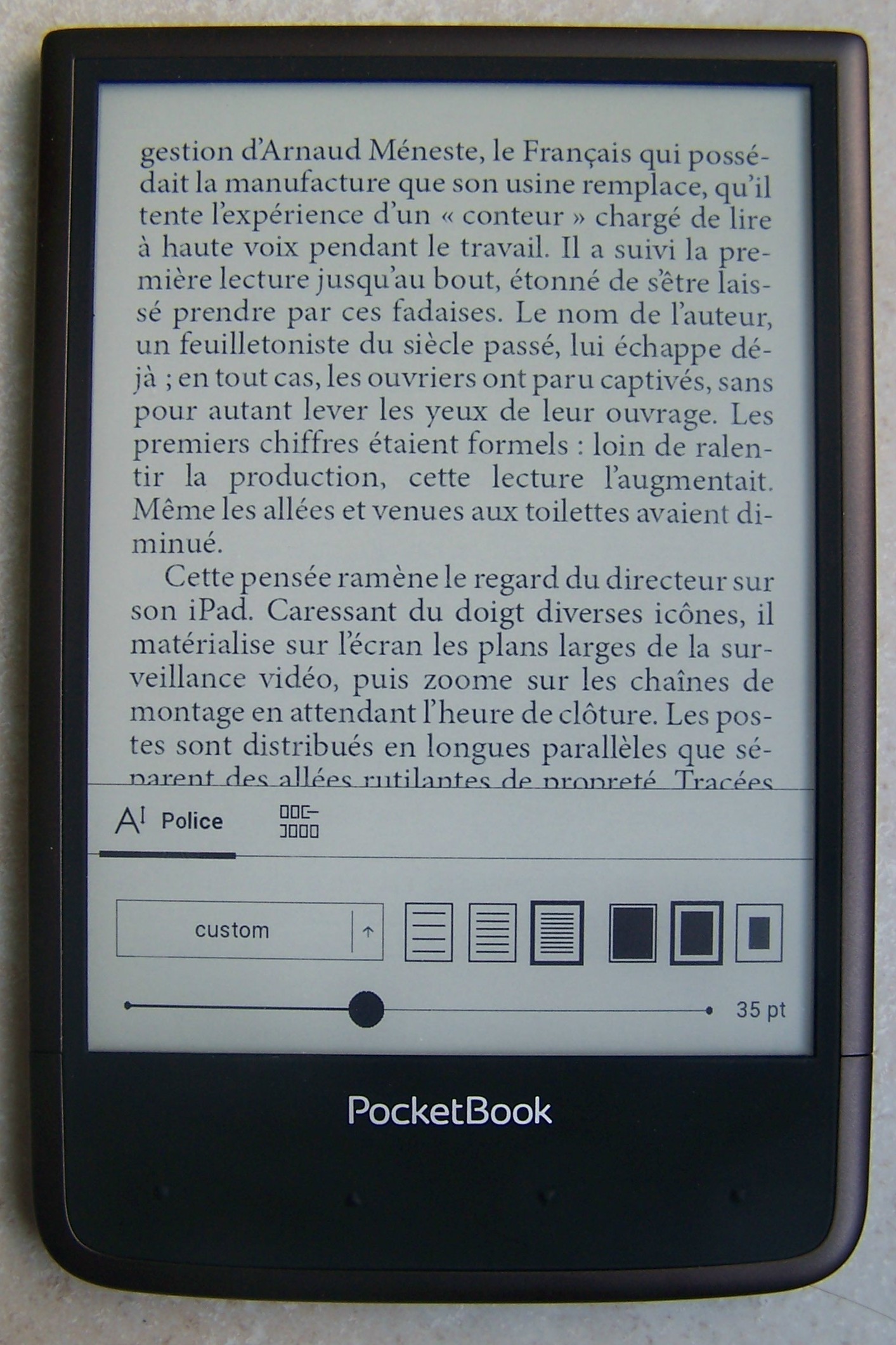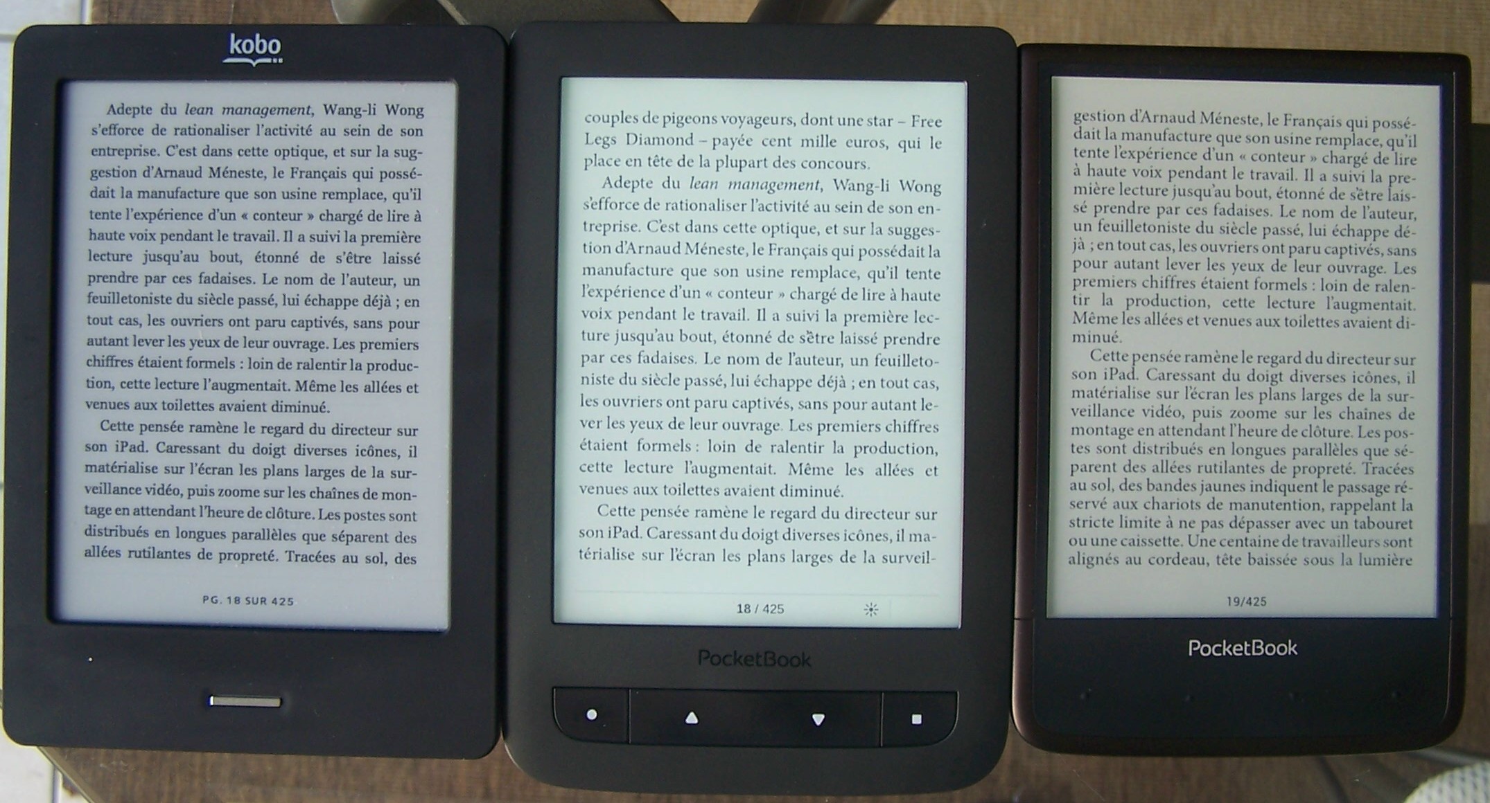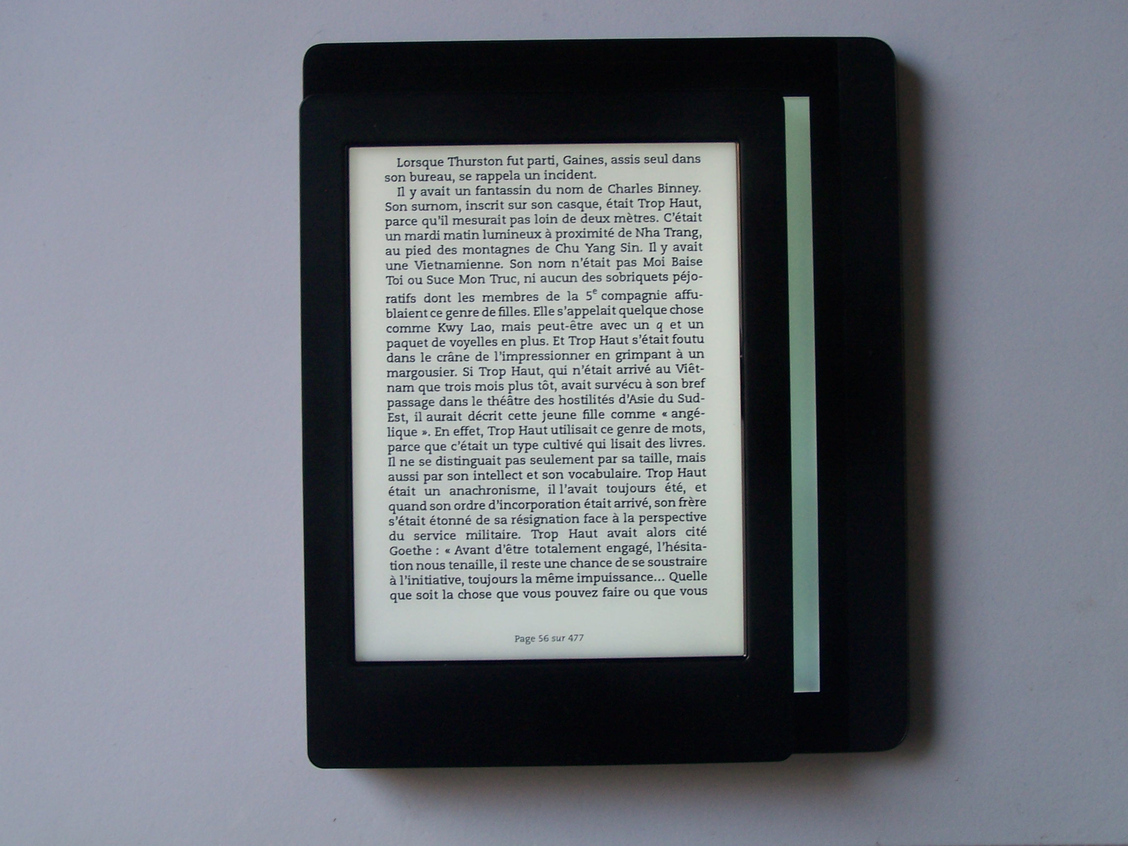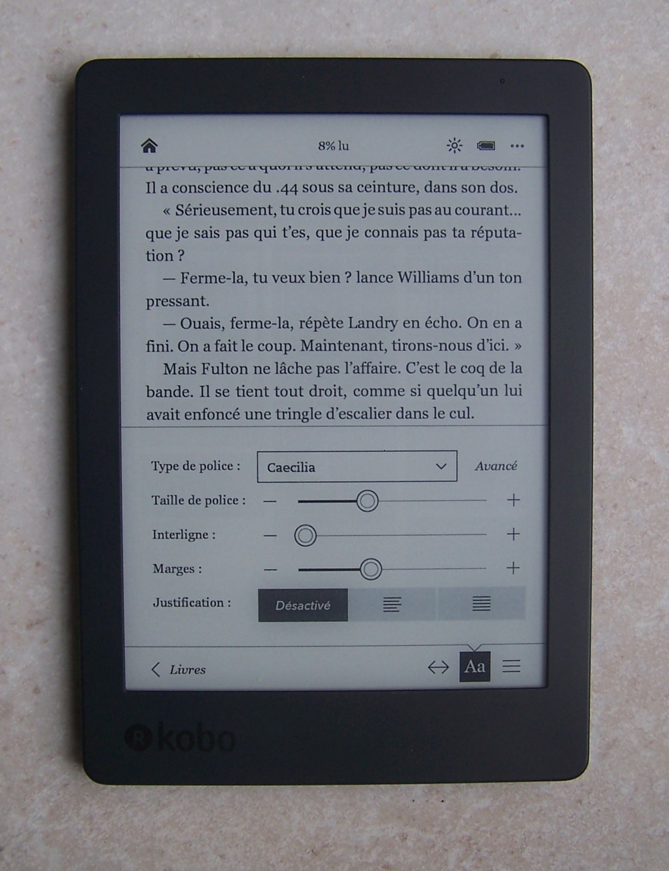 J'avais un peu peur aussi concernant la définition des caractères, un peu moins bon que pour les liseuses eInk récentes. En mode HD, on a le noir et blanc en 300PPI. Là aussi avec le contraste un peu en deçà, c'est tout à fait acceptable à l'usage; il vous suffira aussi d'utiliser des polices un peu plus grasses, qui vous apporteront un bon contraste.