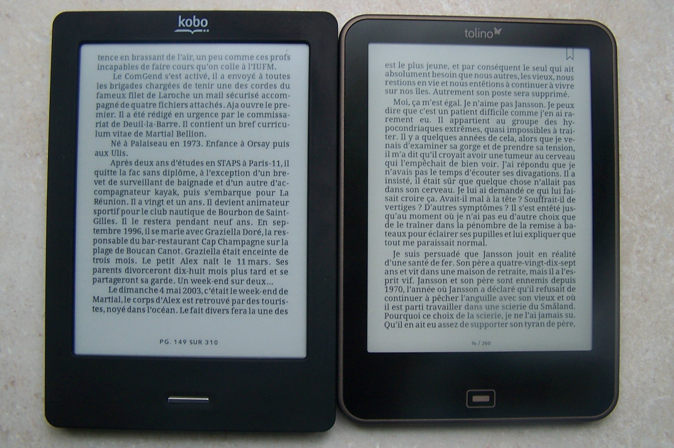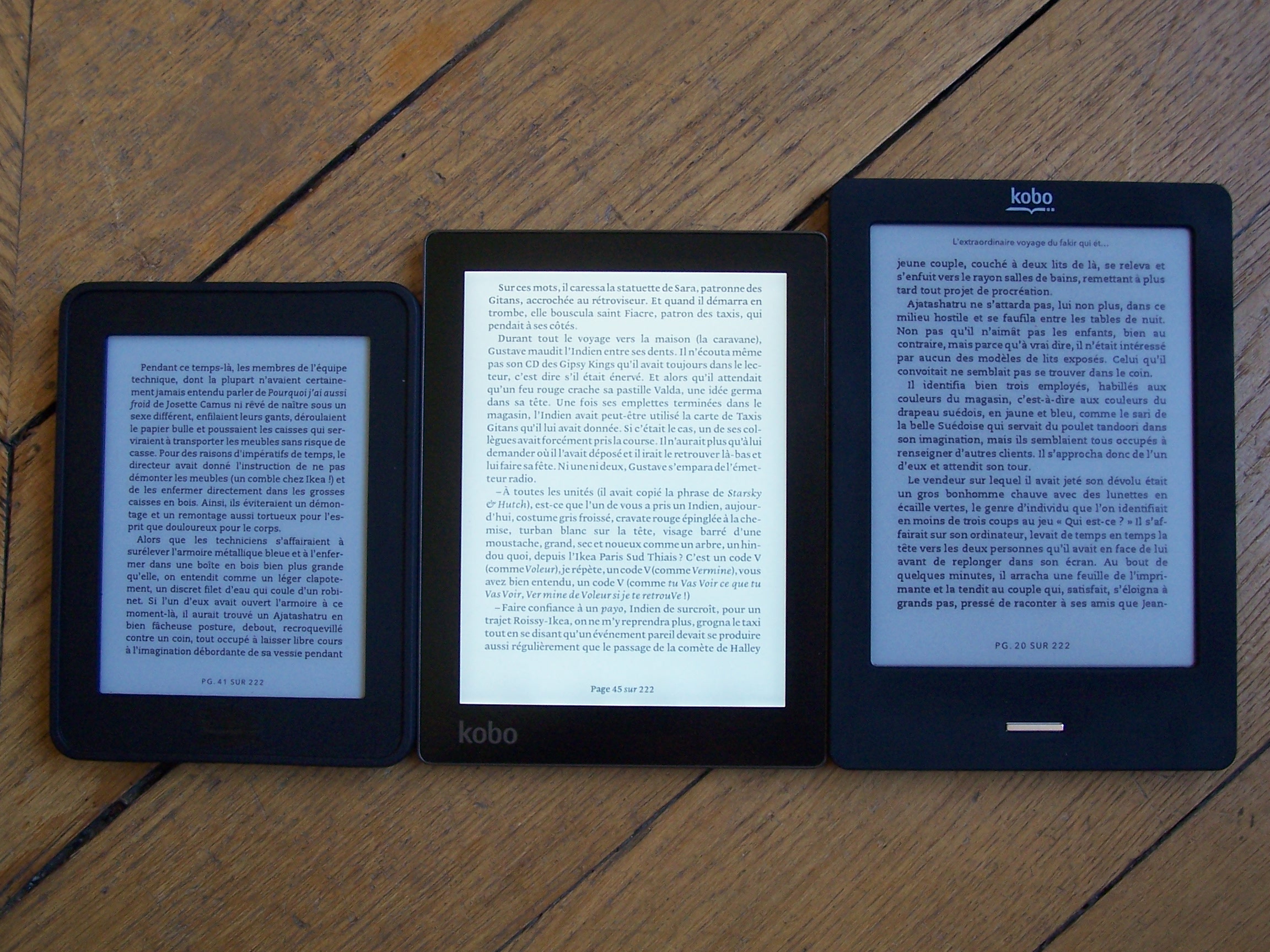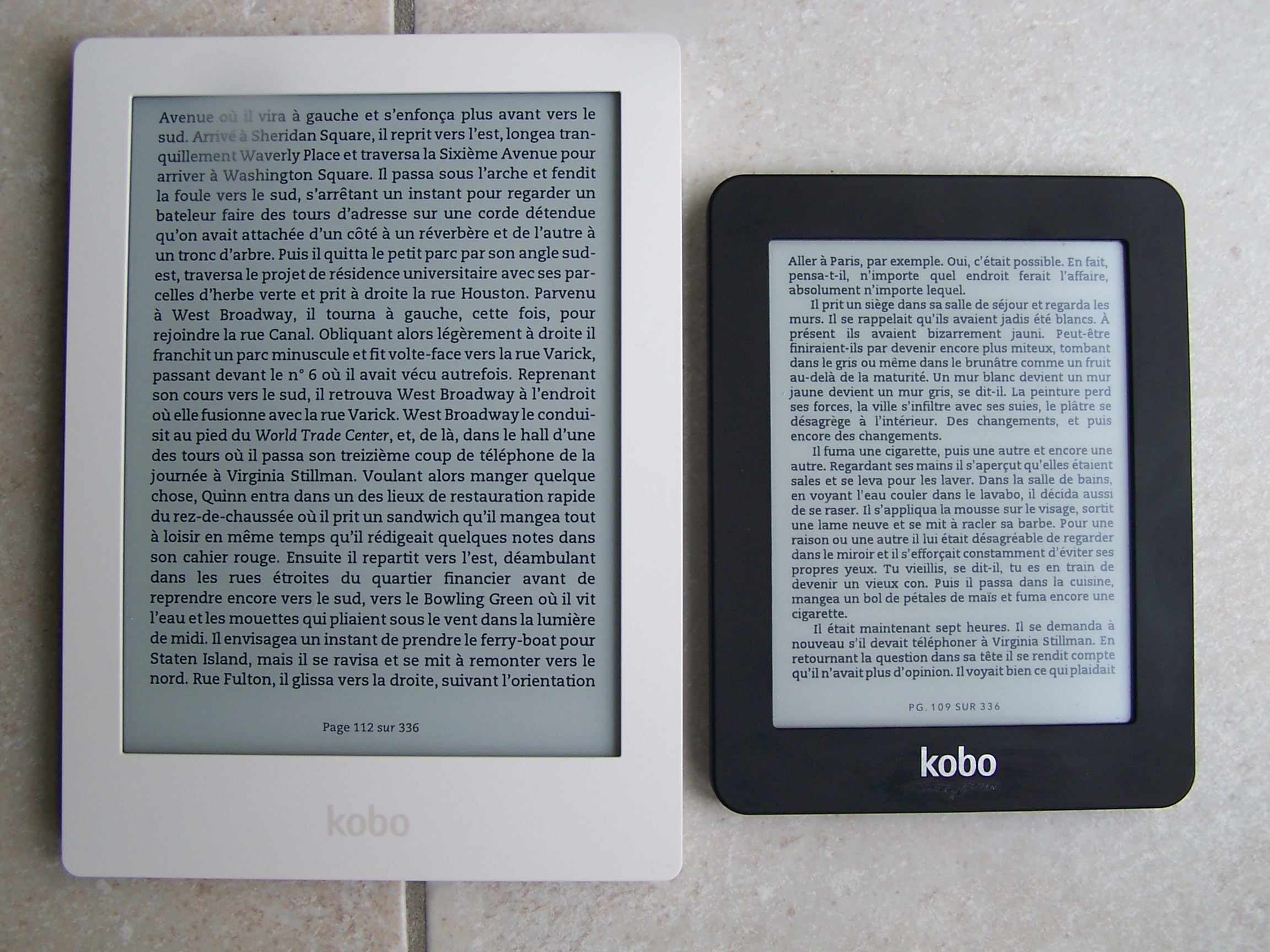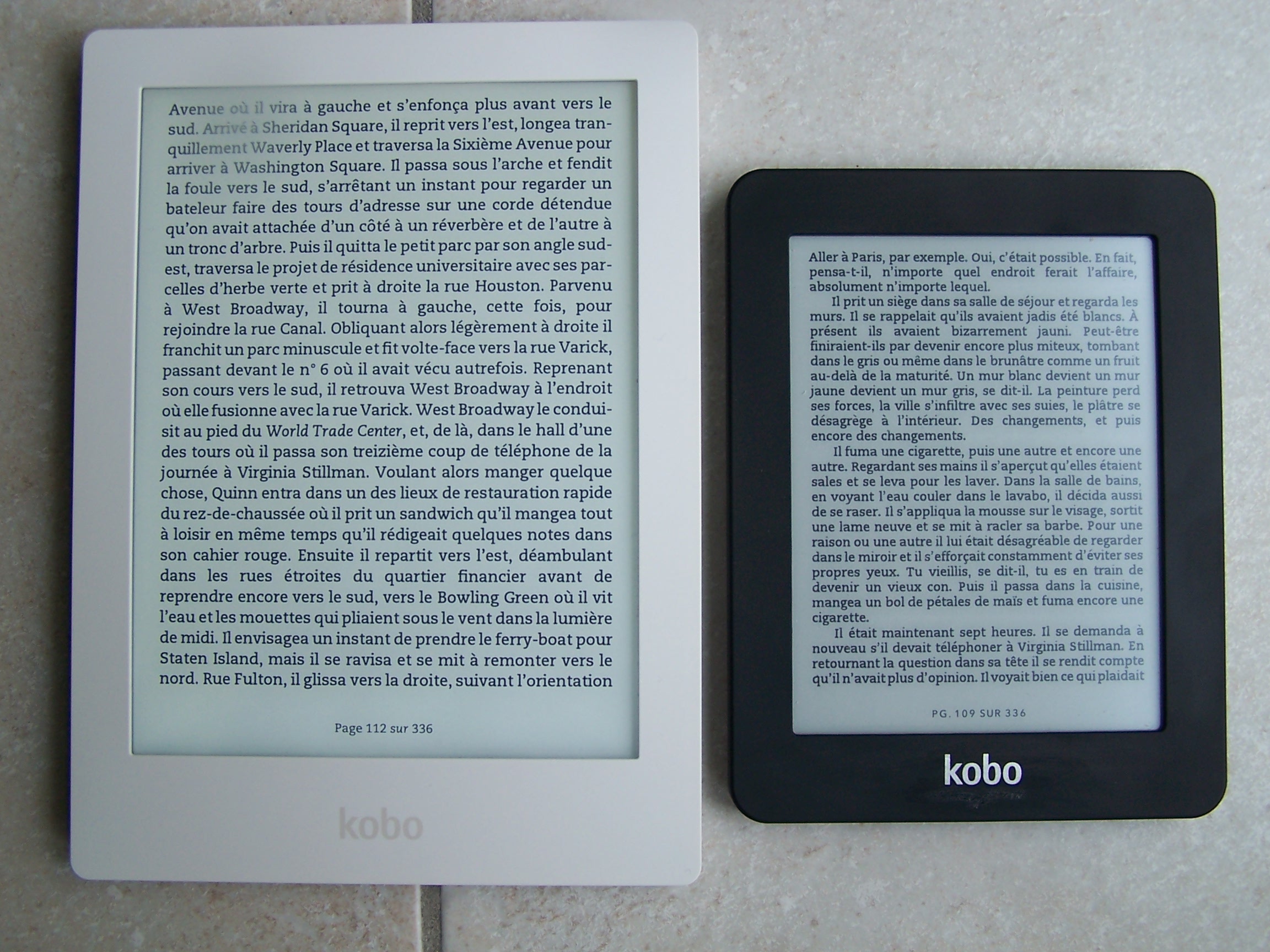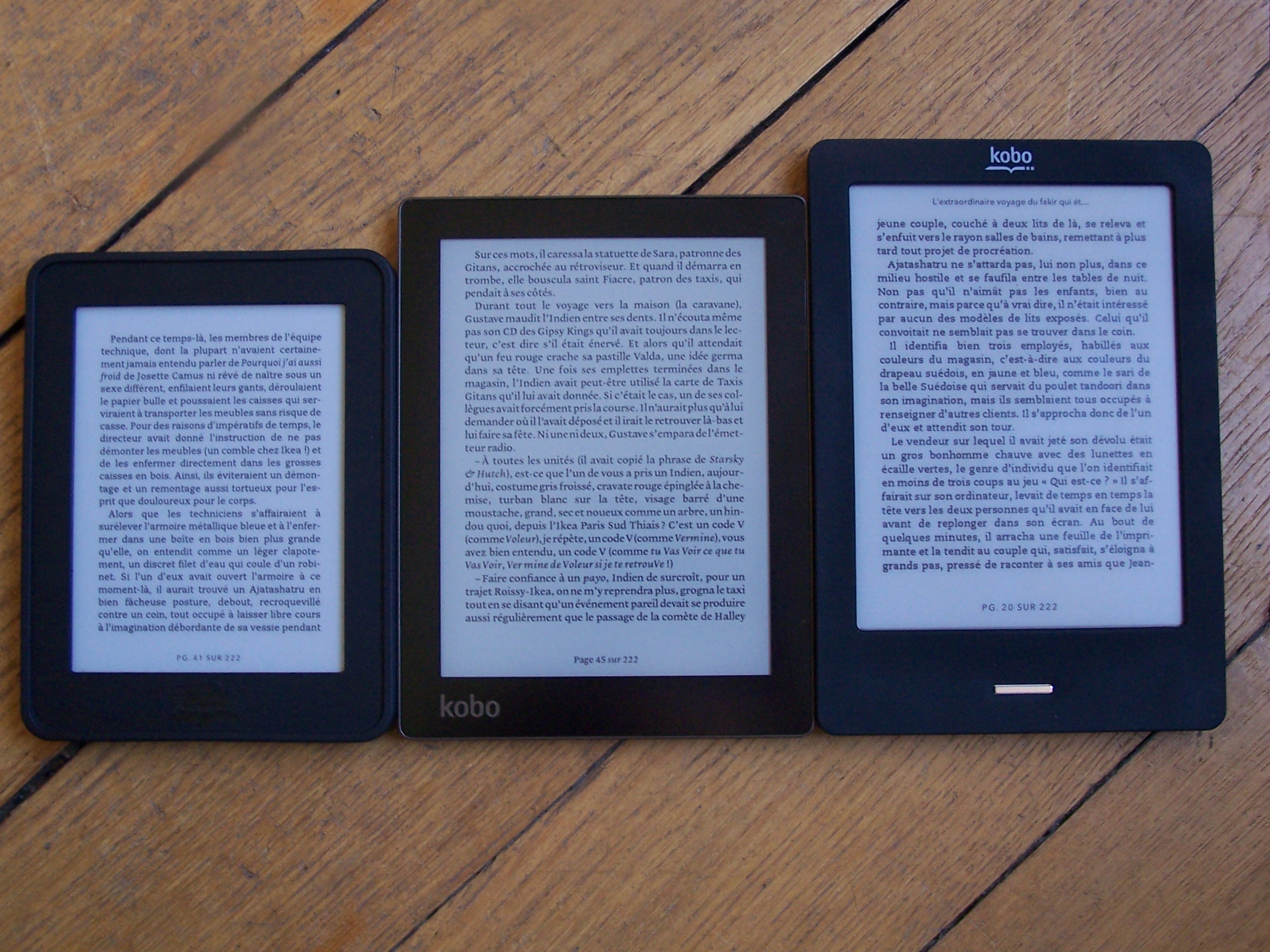 Photos de comparaison avec les Kobo Mini et Kobo Touch, cliquez sur les photos pour aggrandir.