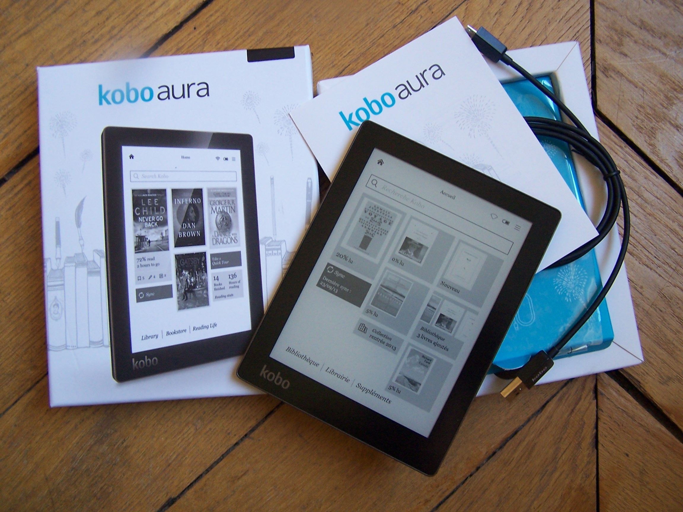 Il est disponible à la Fnac depuis quelques semaines, je vous propose aujourd'hui un test complet du nouveau Kobo Aura. Quelques mois seulement après la sortie d'un grand Kobo Aura HD (revoir mon test ici), Kobo nous revient avec un petit frère qui présente des caractéristiques bien différentes, nous allons les voir. Après les modèles Kobo Mini et Kobo Glo qui faisaient suite au Kobo Touch, c'est aujourd'hui donc un 5ème modèle (excusez du peu) proposé par le fabricant canadien. Ce Kobo Aura est proposé en deux coloris (noir et rose), toutes les caractéristiques ici, vendu au prix de 149,90€ à la Fnac, un supplément de prix de 20€ par rapport au modèle Glo tout juste précédent dans la gamme avec l'éclairage intégré et 20€ de moins que le modèle plus grand Aura HD. Kobo a choisi de se recentrer désormais sur un créneau plus qualitatif pour ses lecteurs et sans doute à plus forte valeur ajoutée pour lui. Ce Kobo Aura se présentera sans nulle doute comme le modèle fer de lance de la gamme et nous donne dès à présent des indications sur l'évolution des modèles futurs. Nous allons essayer d'en savoir plus avec un tour complet du propriétaire. C'est parti: