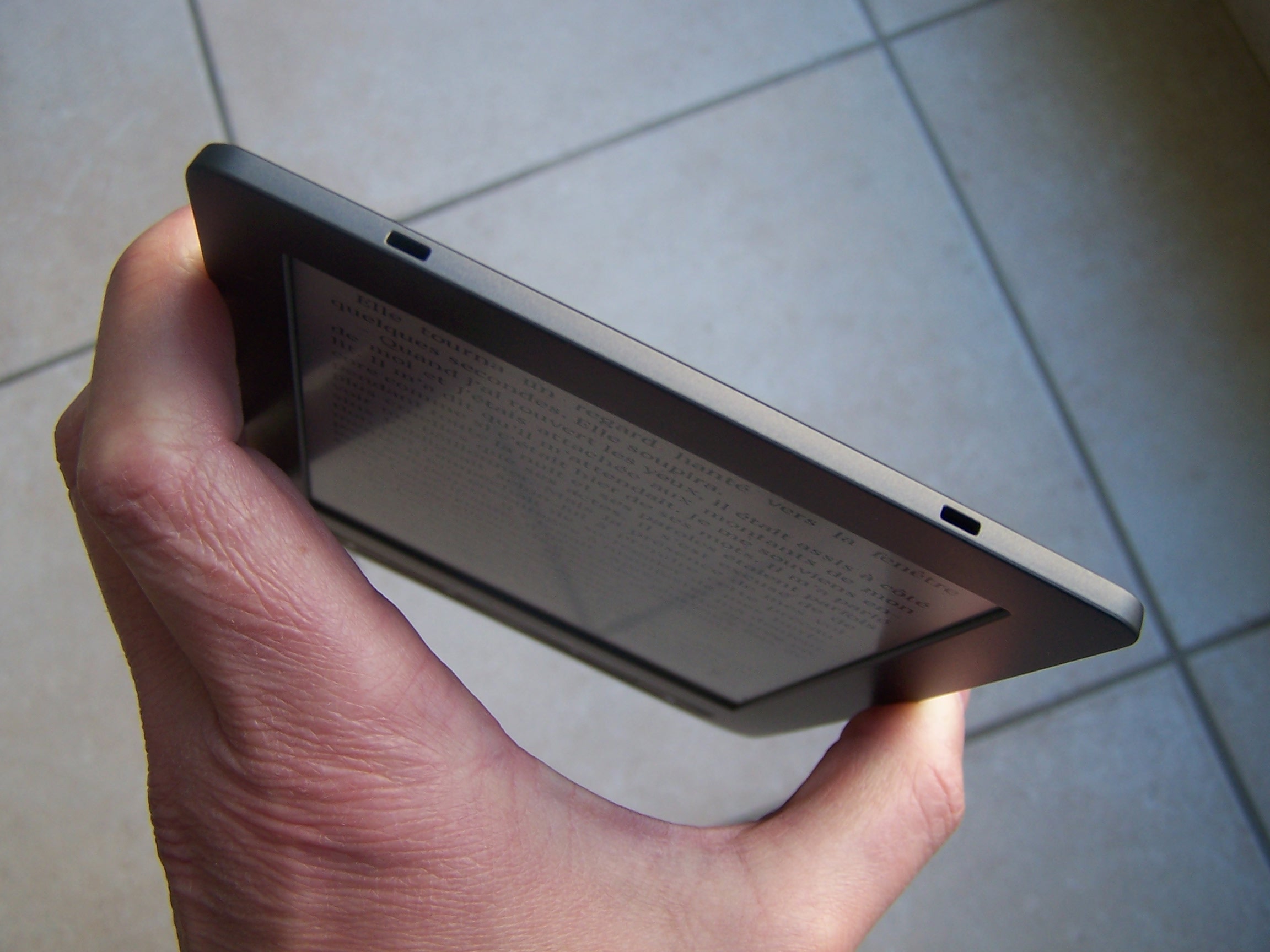 - écran eInk Pearl HD légèrement plus gris que eInk Pearl avec la dalle capacitive, la lumière s'impose constamment malheureusement